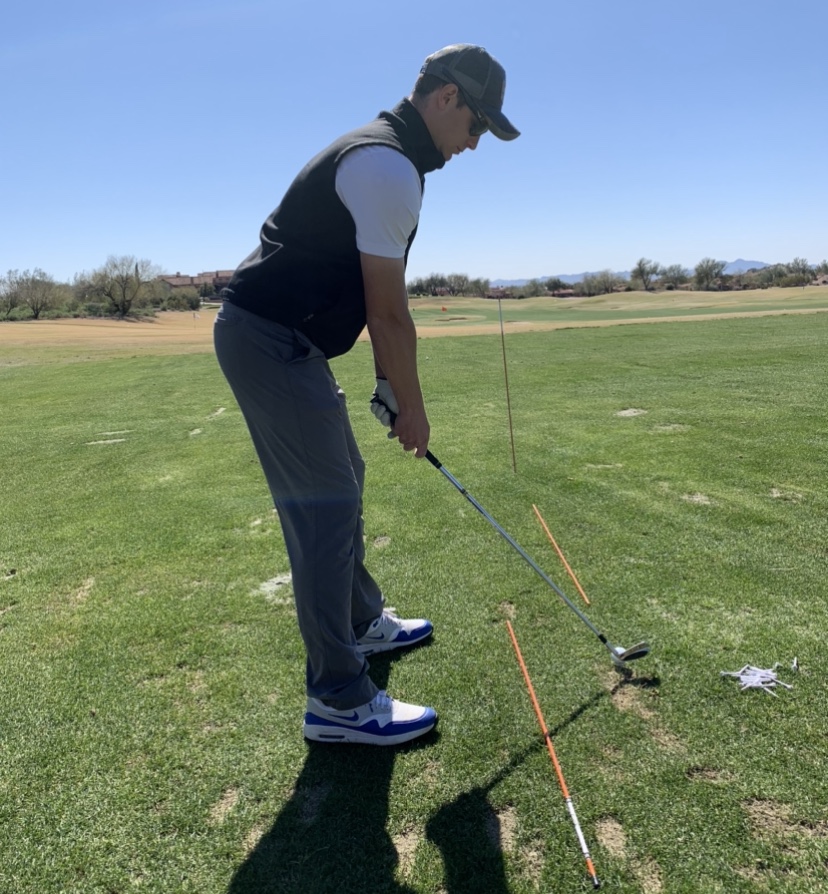 - Ensure the phone is far enough away to film the golf club throughout the entirety of the golf swing (including: backswing, top of swing, and follow through).